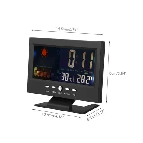 Die Farb-LED-Anzeige liefert eine klare, gut lesbare Darstellung – Uhrzeit, Temperatur, Luftfeuchtigkeit und Wettertrend. Perfekt für Tag und Nacht, ohne die Augen zu belasten.